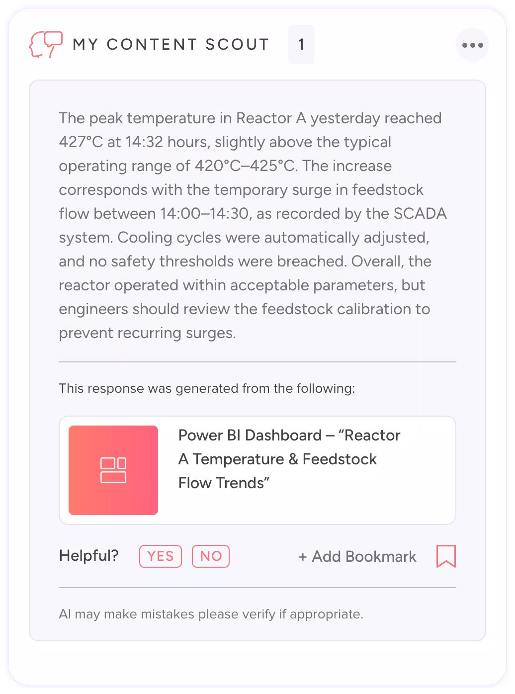 MyContentScout delivers verified, permission-based answers that reflect your company’s voice and standards, keeping innovation aligned and brand-consistent.